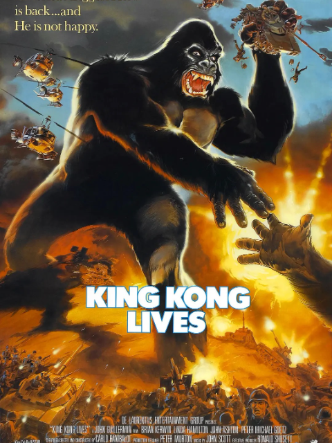 大金刚在军警围捕之下,终于从帝国下厦摔下受重伤,十年后,在乔治亚洲特兰大大学医疗研究,有机会再度复活。为此研发人工心脏,准备为她做换心手术,但要量同类的血液。正当大家一筹莫展时,米奇意外地抓到另一只母猿,并卖给政府以便进行手术,艾咪为此手术执刀,不料手术后的大金刚与母原从回原生地,逃开人类的控制,而[展开全部]